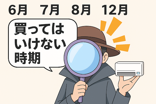 エアコンを買うタイミングはとても重要で、時期を間違えるとムダに高い買い物になってしまいます。特に避けたいのは、6月〜8月の繁忙期です。